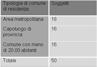 I soggetti intervistati sono stati selezionati in modo da coprire l’intero territorio nazionale e così suddivisi: